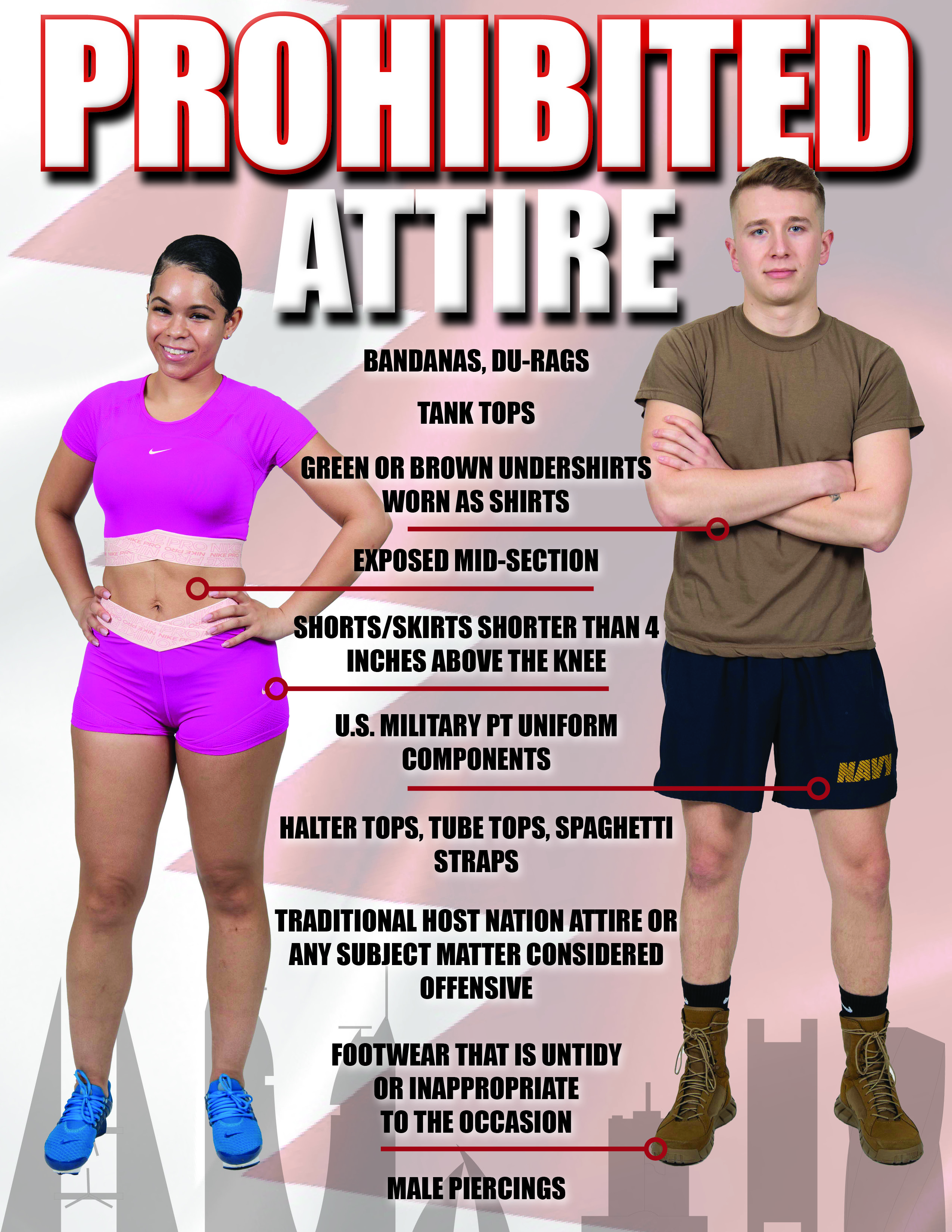 (a) U.S. personnel (service members, DoD civilians, and their dependents) must be aware of local sensitivities and cultural values in order to minimize the impact of U.S. military presence and reduce, to the maximum extent possible, any potential host nation friction. Authorized and prohibited clothing specified in this instruction is specific to this AOR and may be more restrictive than military regulations.